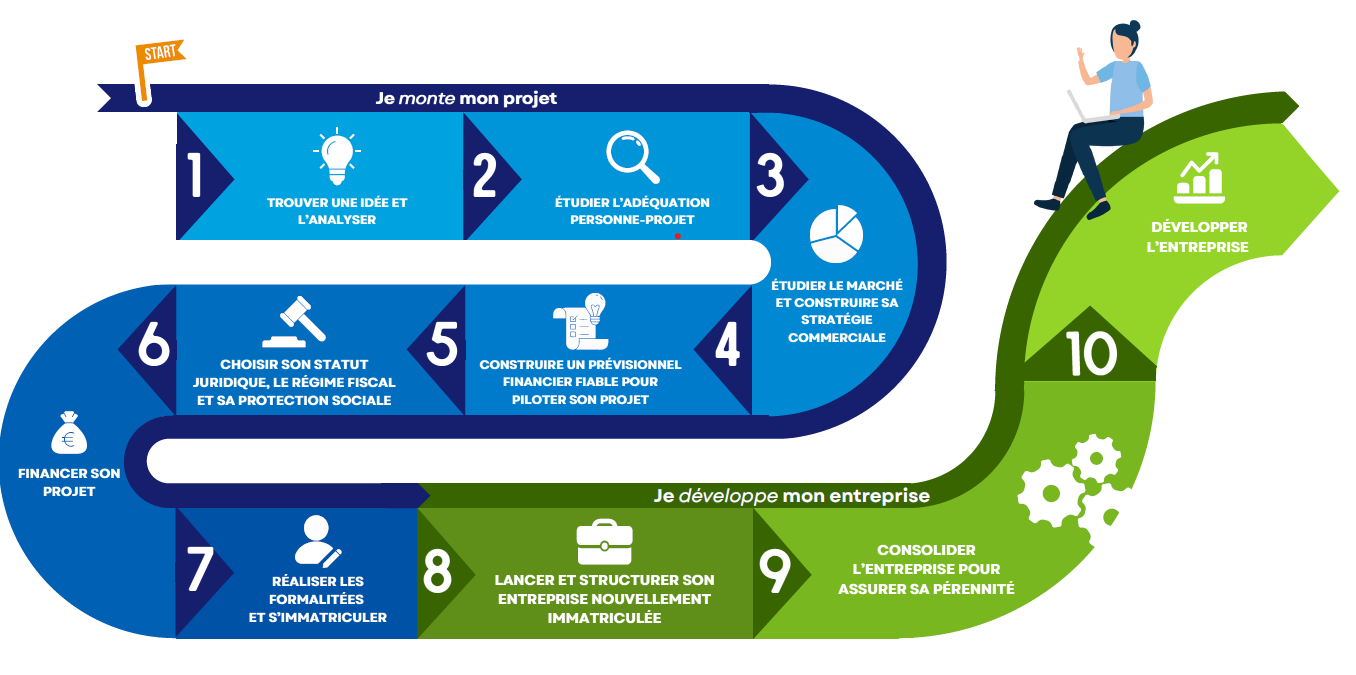 Plongez dans les 10 étapes clés de la création d’entreprise et découvrez comment notre accompagnement personnalisé vous aide à réaliser votre projet.